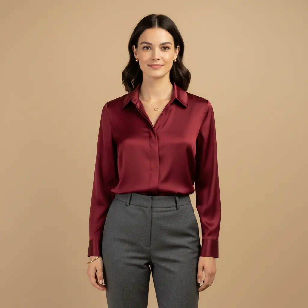 Elevate your wardrobe with our luxurious Satin Blouse. Crafted from premium silk-blend satin, this elegant piece drapes beautifully and catches the light with a subtle sheen. Perfect for both office wear and evening occasions.